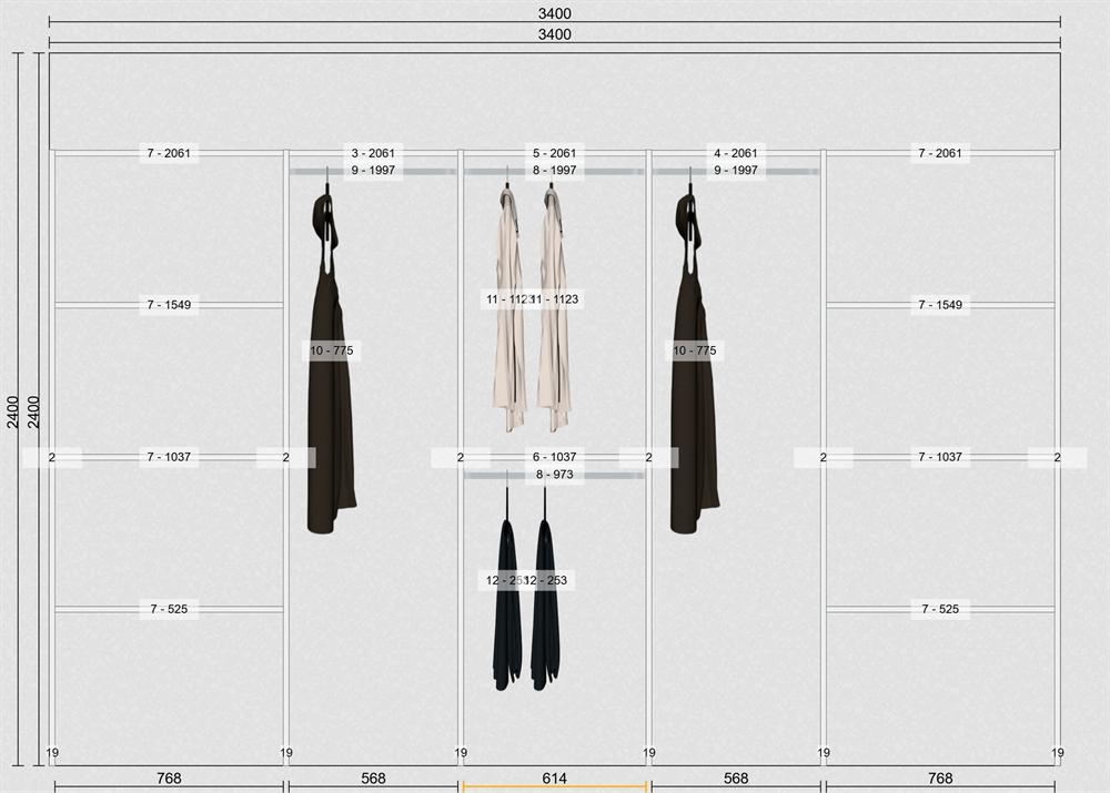 OBS: Inventar er uden bagbeklædning / inventar har standard højde på 207,4 cm. 50,5 cm. dybde