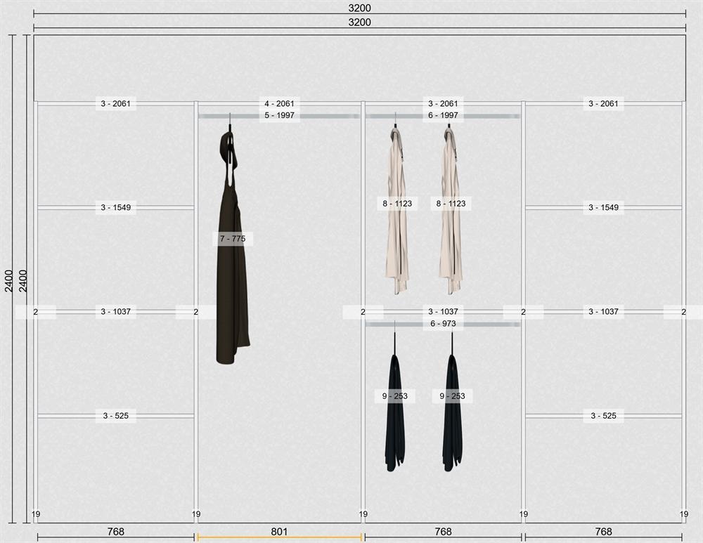 Celebert Inventar fra bredde 320 til 340 cm passer til 4 skydedøre