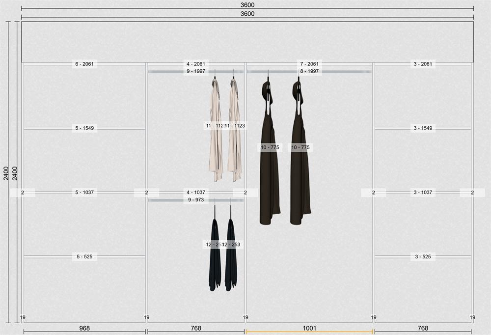 Celebert Inventar fra bredde 360 til 380 cm passer til 4 skydedøre