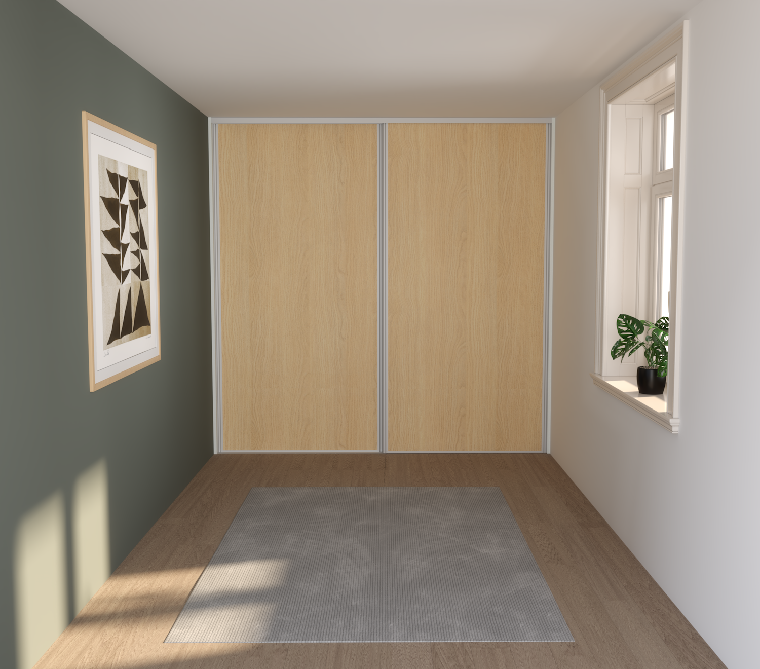 Opdag enkelheden med Modul One skydedør – den perfekte løsning til dig, der ønsker en stilren og funktionel dør. Med fokus på enkelthed og brugervenlighed passer denne model perfekt til mindre garderober eller soveværelser.