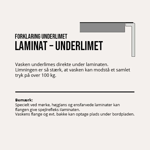 Underlimning af vask samt strainer og afløbssæt.