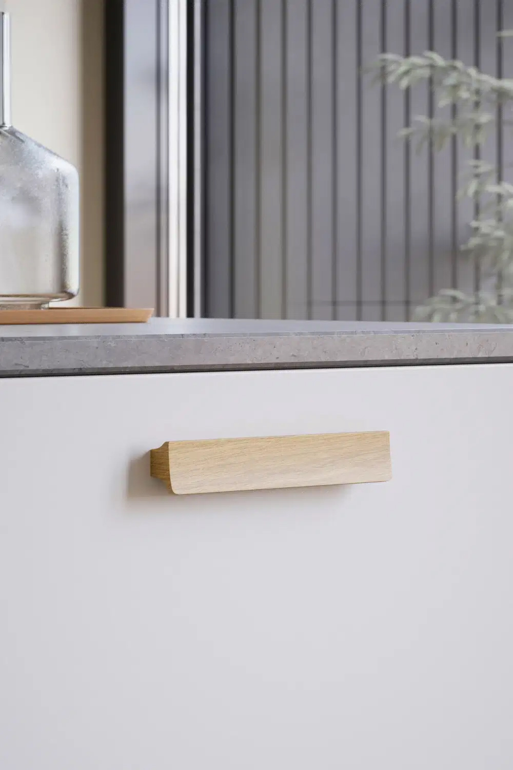 Dets karakteristiske buede front tilføjer en subtil elegance samtidig med at det byder på en æstetisk oplevelse. Med en let forsænket front indbyder Ante forbrugeren til at fordybe sig i designets skønhed og komfort. Den fine aftegning af profilen tilføjer karakter og dybde til grebet, hvilket gør det til et smukt blikfang på dine møbler eller skabe.
