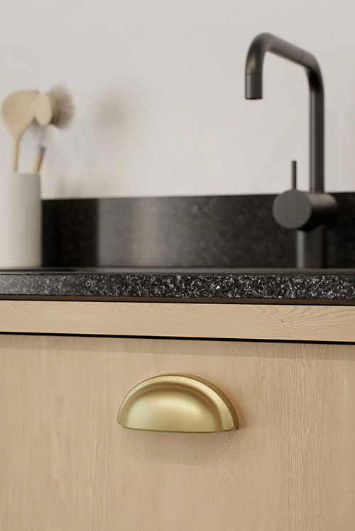 Dette greb er inspireret af naturens organiske former. Designet trækker på de bløde, runde silhuetter, man finder i frugter og grøntsager, og skaber en form, der føles naturlig og behagelig i hånden. De organiske kurver af disse naturlige elementer tilbyder en tidløs skønhed, som set i klassisk design, hvor enkelhed og elegance går hånd i hånd med det organiske.