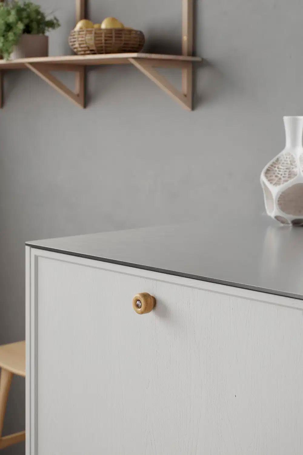 Nola er en moderne fortolkning af de klassiske møbelknopper, der traditionelt blev monteret forfra. Designet trækker på vintage-referencer, hvor synlige skruer var en praktisk og ærlig løsning — her genfortolket som et bevidst designelement. Med sine bløde kurver og kompakte proportioner tilbyder Nola et behageligt greb og et venligt, taktilt udtryk.