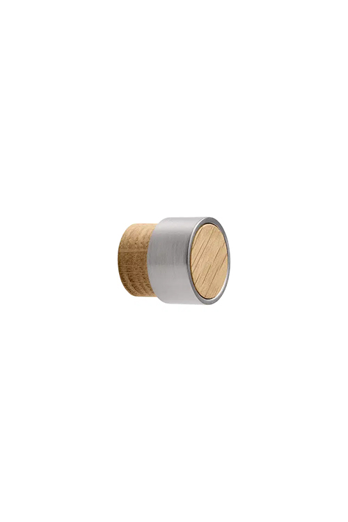 En simpel cylinder inspireret af knapperne på en klassisk (retro) radio. Knoppen er enkelt og med sin kombination af træ og metal, kan man med radiogrebet opnå et smukt udtryk på sit møbel. Med træet i samme materiale som fronterne, står ringen omkring cylinderen frem som et lille smykke. Materialekombinationen i Radio, giver et væld af muligheder for at fange en bestemt stemning i indretningen.