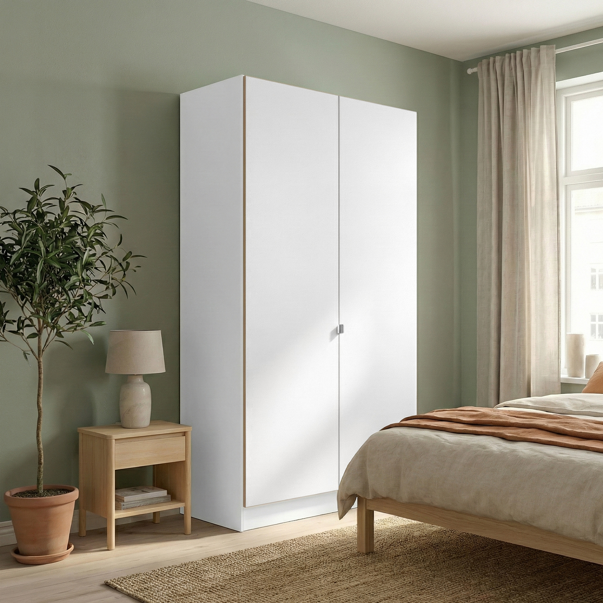 Garderobeskab med 2 låger i hvid 120 cm fra Kitchn med Oregon Hvid/Eg Natur front