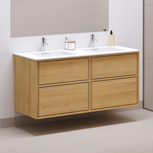 Kernen i møblet er det solide snedkerhåndværk med skuffer i massivt, fingertappet egetræ, som sikrer en konstruktion, der holder i mange år. Samtidig er møblet spækket med gennemtænkte features som Easy Access installation, Safe Mount system og Open Bottom design, der gør både montering og tilslutning markant nemmere og mere fleksibel end på traditionelle badmøbler.