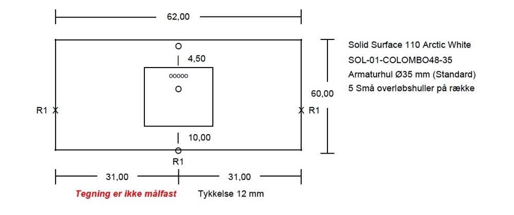 Marmorline Solid Surface - Colombo vask - 62x60 cm